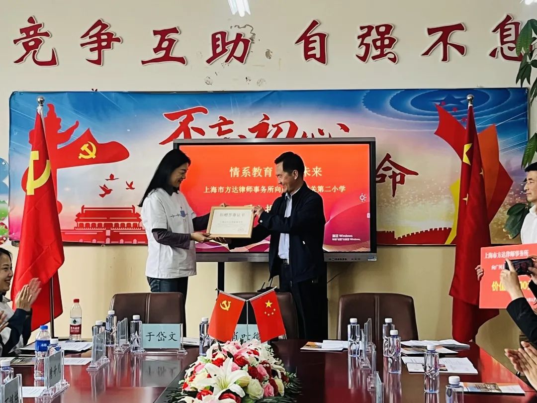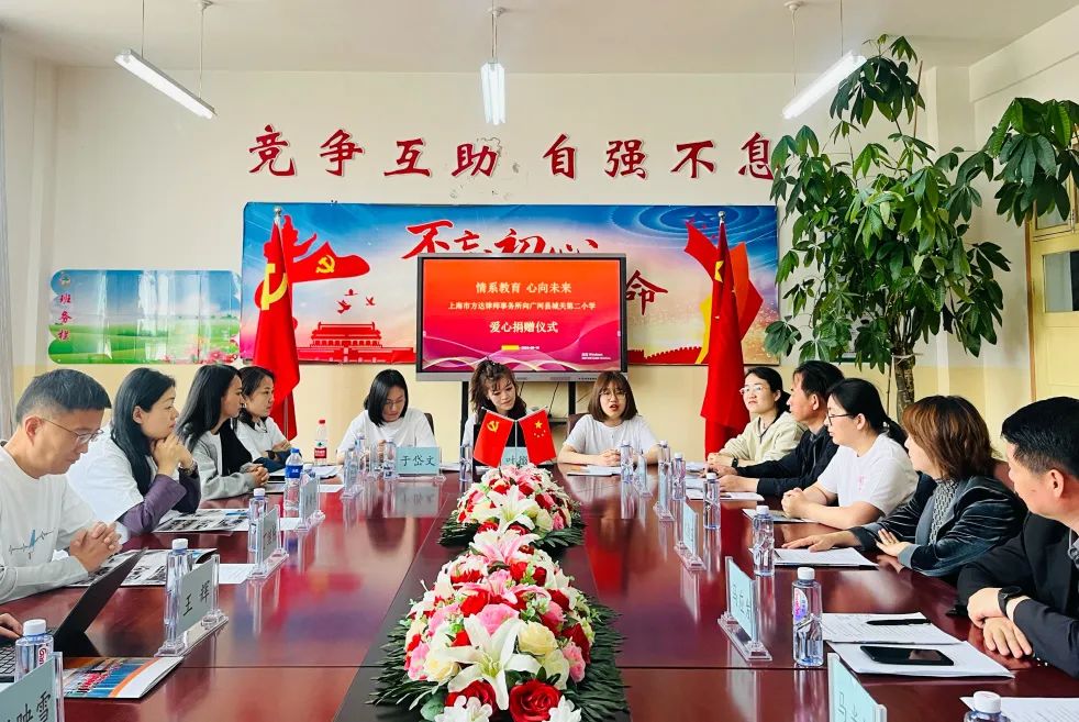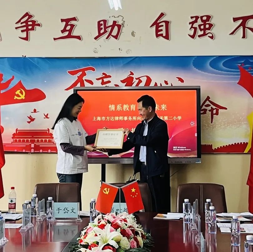 访校当天上午,甘肃省宁夏回族自治州广河县城关二小校方及当地政府教育相关负责人为方达访学团举办了欢迎座谈会,并在随后的爱心捐赠仪式上为事务所颁发了捐赠答谢证书。同事们聆听了美丽中国项目负责人的介绍,了解项目的运行和实施情况,支教老师们也分享了她们投身农村教育事业、竭尽全力帮助孩子们全面发展的心得体会。访学团还将方达纪念小熊赠予了四位支教老师,希望它们可以陪伴老师们度过有意义的支教时光。