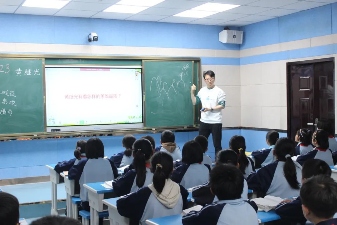 我问他们,知不知道为什么黄继光要用胸膛堵住机枪眼?孩子们众说纷纭,我给他们在黑板上画了上甘岭597.9高地的位置,简单讲解了火力压制的情况和利害关系,然后问他们,如果后面是你们的同学,你是黄继光,这个时候冲锋号要吹响了,你们会和黄继光一样做出选择吗?孩子们齐声回答到“会”。