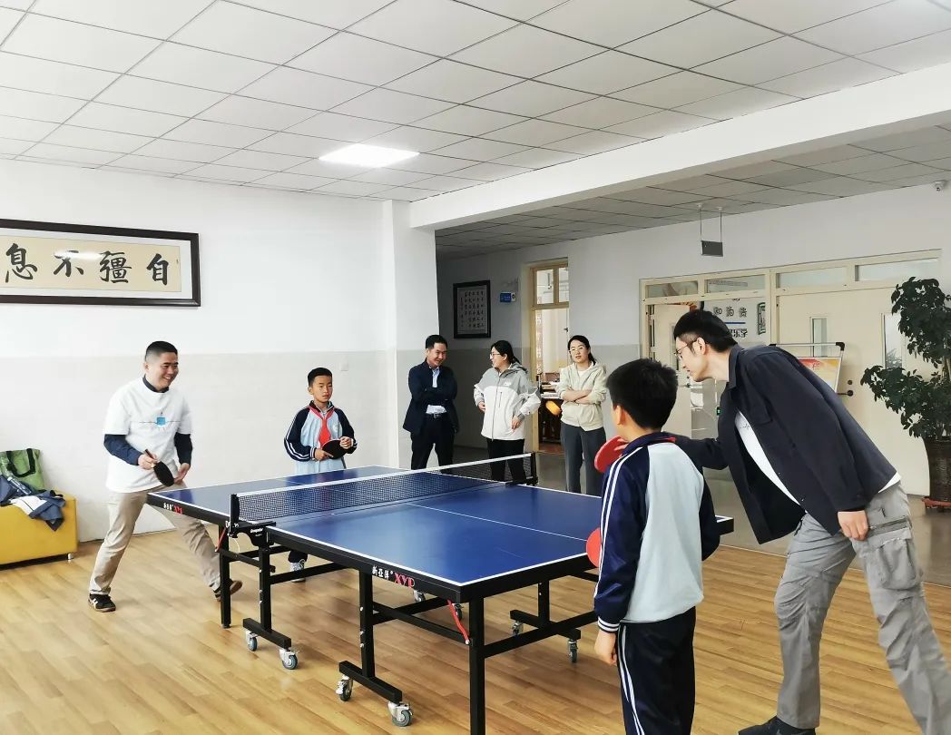 此外,同事们还体验了学校丰富多彩的社团活动,有:乐高社团的乐乐箱、CSTEM社团的动手实验、美术社团的绘画,以及合唱、舞蹈、乐器演奏等文艺社团的熏陶。在乒乓球台旁,同事们还拿起球拍,与乒乓球社团的学生们进行了友好又激烈的比赛。