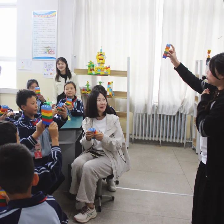 张映雪:本次参访让我印象最深的是一节创新课程,同学们围绕“荒岛求生”这一主题拼搭乐高家园。课堂上,小朋友们展开了一系列的头脑风暴,诸如房子建在树上、救生艇藏在家里、修水池存储淡水资源、开荒地钻木取火等等,设计理念各异,造型个个别具一格,不禁感叹小朋友们的学习潜力和创造力真的是无限大。