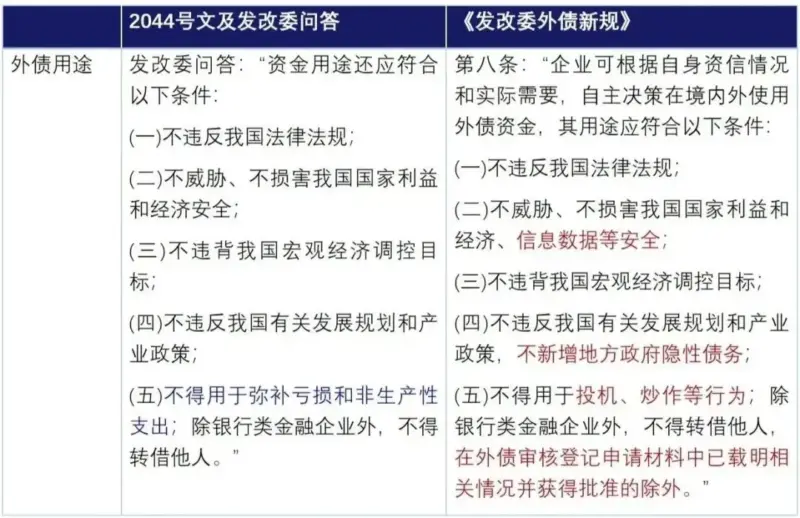 2. 删除“不得用于弥补亏损”的要求,相对于发改委问答所规定的发债资金用途,《发改委外债新规》删除“不得用于弥补亏损”的要求。