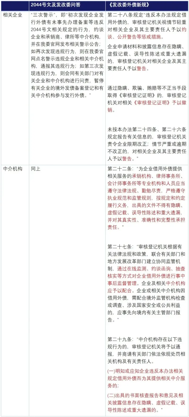 2044号文并未专门规定违反发改委外债登记及相关规定的法律责任。实践中,发改委主要通过“三次警示”等措施惩戒相关违规行为。我们注意到,《发改委外债新规》规定了违反该规定相关企业的法律责任,并在违规内容与惩戒措施方面进行了细化。