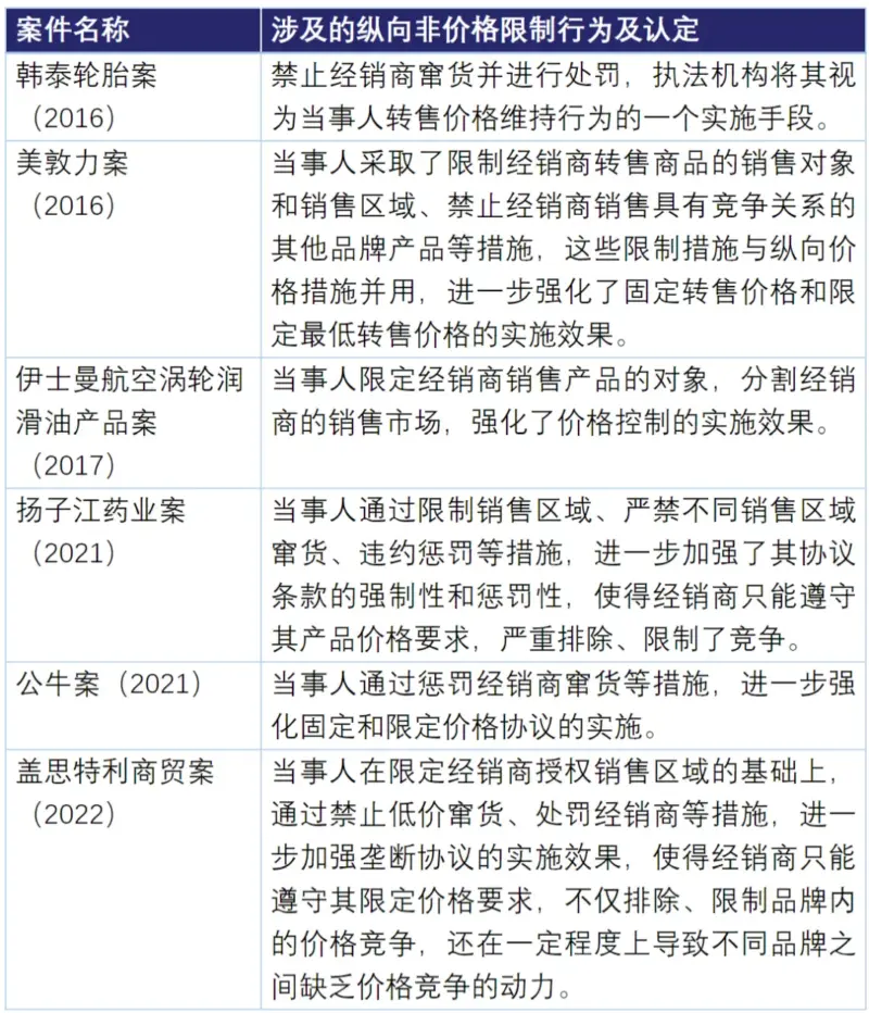(2)关于纵向非价格限制的执法情况