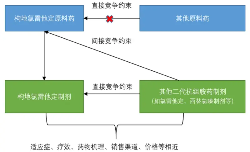 - 另一方面,最高法院补充提示,原料药等“中间投入品”的市场界定还需要考虑来自下游市场的间接竞争约束。由于对中间投入品的需求最终受到来自使用该中间投入品的终端产品的需求的影响,为界定中间投入品的相关市场,不仅要考察来自直接竞争者(也即其他原料药厂商)的竞争约束,也要将来自下游市场(也即与下游制剂厂商展开竞争的不同制剂厂商)的间接竞争约束纳入考量。具体到本案,合肥医工作为枸地氯雷他定原料药的经营者,与枸地氯雷他定制剂厂商存在深度绑定关系,因而受到其他原料药经营者的直接竞争约束有限。尽管如此,由于枸地氯雷他定制剂与其他二代抗组胺药的需求替代性较强,上游原料药厂商实际上也会受到来自下游制剂市场的间接竞争约束。