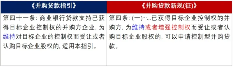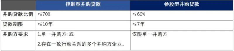 《并购贷款新规(征)》就“控制型并购贷款”和“参股型并购贷款”业务的开展设置了差异化的监管要求。